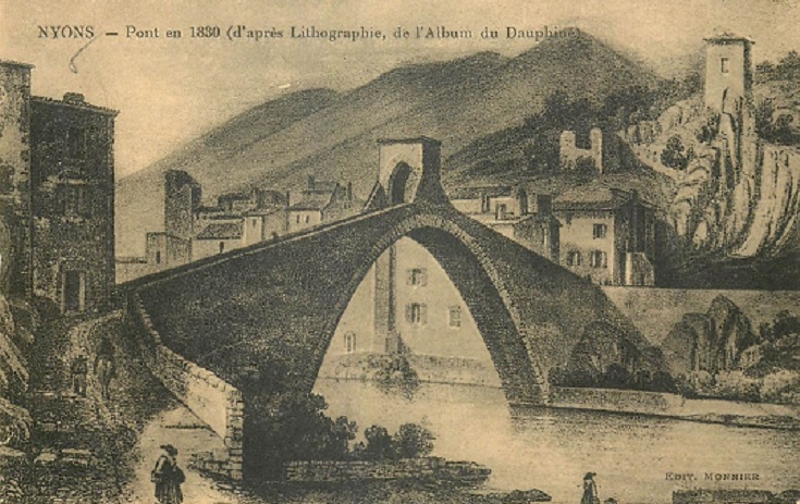 Nyons. Guy, baron de Montauban, avait obtenu les revenus de ce péage en 1309. Ils passèrent ensuite aux dauphins Guigues et Hubert II, qui le cédèrent aux de Carsan et aux Eustache. Comme il était advenu aux rois de France et qu’ils aliénèrent la seigneurie à la commune, le péage se trouva compris dans la vente; mais un arrêt du Conseil d’État du 14 février 1733, le réunit au domaine de nouveau.