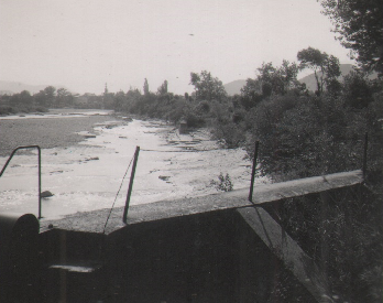 » En résumé, on peut dire, alors que vers 1860, le lit de la rivière était plus élevé, les eaux arrivaient presque naturellement vers la prise et il suffisait en cas de besoin et de très peu de travail pour les diriger à travers les graviers. Par la suite, le lit se creusant, est apparue la nécessité d’exécuter des barrages pour compenser son abaissement. Ces barrages ont pris de plus en plus d’importance et on est arrivé à une époque où en période de basses eaux, ils perdent totalement de leur efficacité, le relèvement d’eau étant devenu trop important pour pouvoir être obtenu par des moyens sommaires. De plus, lorsqu’il suffisait au début de refaire ces travaux à intervalles éloignés, il a fallu les reconstruire de plus en plus fréquemment. «