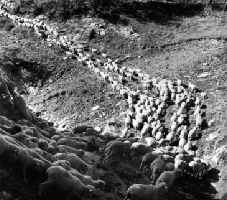 Parfois, les rangs s’éclaircissaient, le défilé paraissait prêt de finir; mais, soudain, surgissaient à l’horizon de nouveaux groupes de boucs ou de béliers, et derrière eux arrivaient à la rescousse d’autres bataillons, masses compactes de moulons et de brebis.
