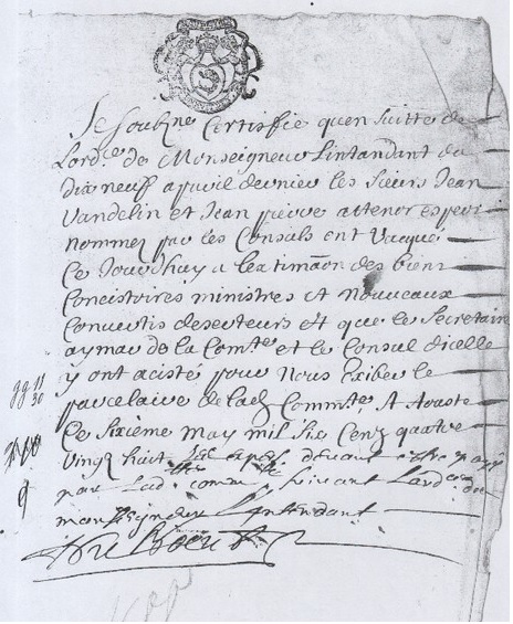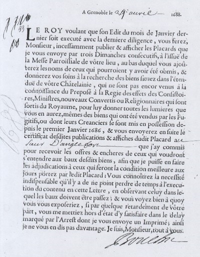 Mai 1688 : ordre d’estimation des biens des nouveaux convertis déserteurs (Annexe 2)