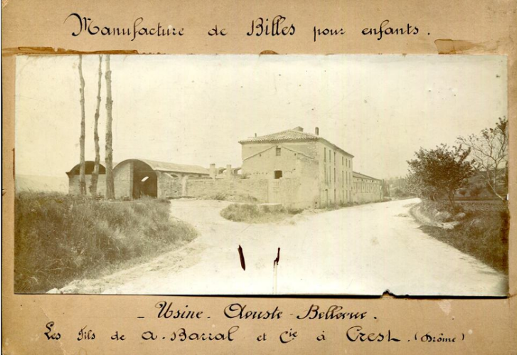 En 1920, les frères Barral ouvrent cette nouvelle usine dans les bâtiments d’un ancien moulinage de soie sur l’emplacement d’un vieux moulin à foulon desservi par le canal des moulins d’Aouste. L’usine à billes s’est installée ici afin d’ utiliser la force motrice de l’eau du canal de la Gervanne à la Sye. Ce canal servait aussi, plus loin, à l’usine textile Rey et à la papeterie Sacna-Lembacel. L énergie était fournie par une roue à aubes remplacée ultérieurement par une turbine.