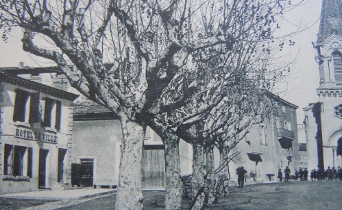 À la fin du XIXeme siècle divers bâtiments et l’église sont détruits pour créer une « avenue » entre l’église et la gare, des platanes vont décorer la nouvelle place.(Voir le document « construction de l’église actuelle d’Aouste » – fiche 16 l’église )