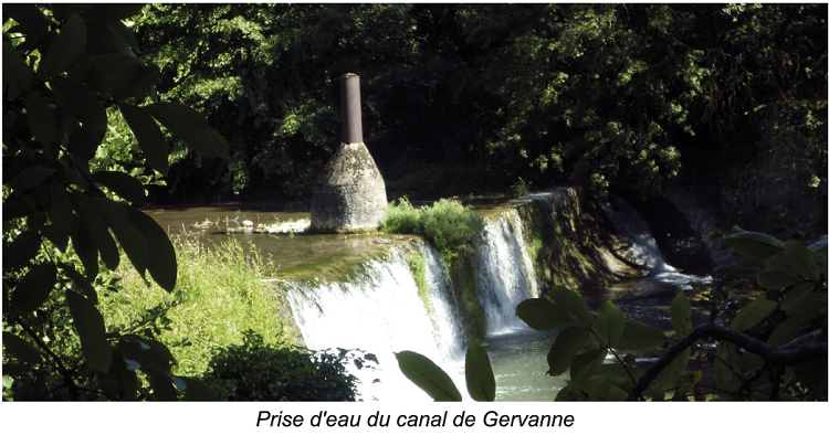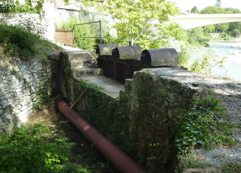 La Vélodrôme emprunte, ici, sur quelques dizaines de mètres, le tracé du canal dit de Soubeyran. Dés 1342 ce canal, rive gauche de la Drôme, alimentait à Crest des moulins puis l’industrie textile. La prise d’eau se situait à 100 mètres en amont, en direction d’Aouste, cette « vanne de décharge » est un des vestiges.