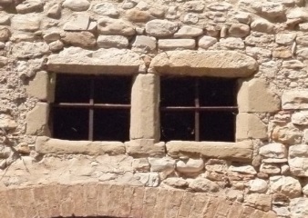 Cette rue desservait un moulin à farine actionné par l’eau, c’était un lieu d’activité important du village, vous pouvez aussi voir les passages sous voûte caractéristiques des rues du Moyen Âge. La baie au dessus de vous rappelle que, depuis 1798, de nombreuses baies à meneaux ont été supprimées pour éviter le paiement d’un double impôt sur ce type d’ouverture: on peut remarquer que les constructions sur voûte contournaient aussi l’ imposition sur la surface au sol des bâtiments !