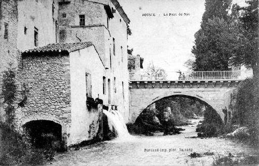 La première demande de création d’un bureau de poste à Aouste date de 1860, elle est longuement motivée par une population de 1200 âmes et une « industrie considérable, on y compte deux papeteries, une importante fabrique de soie, deux ateliers assez considérables de foulons de draps, des moulins à farines, pressoirs a huile, des fours a chaux, des chapeliers…. et un assez grand nombre des ouvriers … »