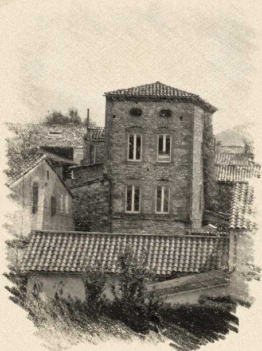 La tourelle en 1910, un des derniers vestiges des remparts qui ceinturaient Aouste. Située à l’angle