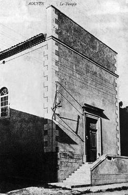 En contournant les constructions par la rue des remparts, on aperçoit les encadrements en pierre de l’ouverture arrière de la synagogue. En 1227, la présence de Juifs est importante. Durant quatre siècles, médecins, commerçants et juristes juifs sont indiqués dans divers documents. A partir de 1350, les Juifs ont joué un rôle important dans l’histoire locale ; en 1473, un docteur en droit quitta « Aoste » pour exercer à Aix en Provence.