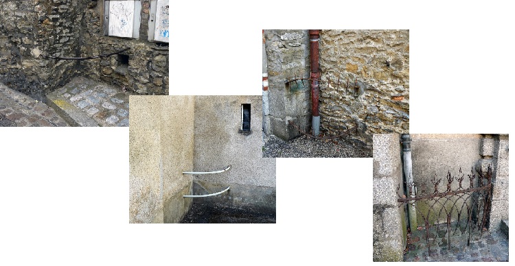 • Angles de mur à l’intersection de deux rues (avant l’implantation des trottoirs). Dans ce cas, ils étaient souvent dans la même pierre que le mur et en constituaient en quelque sorte un prolongement.