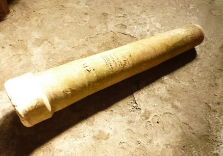 2° photo – vestige romain découvert en septembre 1952, au bord de la rivière de la Drôme ; sur cette pierre une inscription en latin incomplète « Simi ? cn Julius
